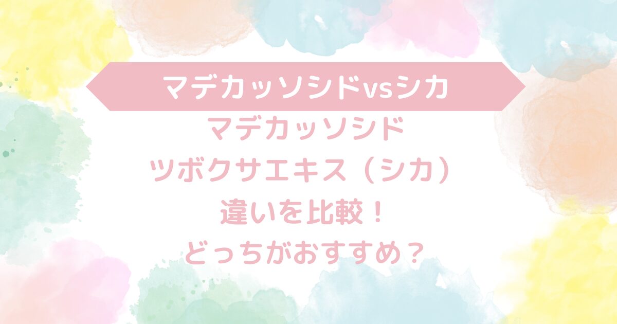 本文ではさらに詳しく、マデカッソシドとツボクサエキス(シカ)の違いを紹介しますね。